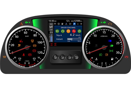 - Three-step entrance, ergonomic dashboard, and clear instrument cluster.